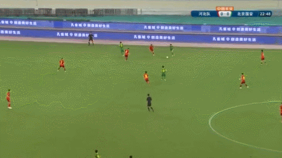 第38分鍾,河北傳切配合將球導到前場,尹鴻博嚐試一腳遠射,但沒能壓住,皮球高過球門飛出。