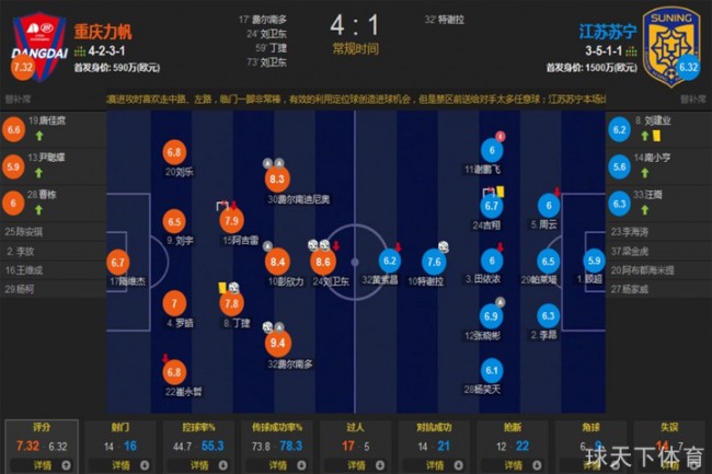 本場比賽,“葡萄牙黃金一代教頭”保羅·本托選擇了重慶隊以前主打的傳統陣型4-2-3-1為本場戰術安排,在邊路的選擇上,保羅·本托繼續使用速度奇快的“小摩托”費爾南多和費爾南迪尼奧。不得不說,也正是因為這2位速度奇快的邊場頻繁的衝擊著蘇寧的防線將蘇寧壓著打。而重慶隊四名後衛的配合更是天衣無縫,在控球率較低於江蘇蘇寧的情況下,重慶隊的隊員恰到好處的協防和緊盯對方前場攻擊人員的戰術發揮奇效,將蘇寧的進攻機會扼殺在禁區外。不得不說,依靠著2位速度奇快的邊鋒,保羅·本托依舊可以憑借著這套陣容打出高質量、高配合的防守反擊。要是依照此般,那麼重慶斯威也許會成為本賽季中超球隊中的另一匹黑馬,也許還能因此收獲亞冠席位。