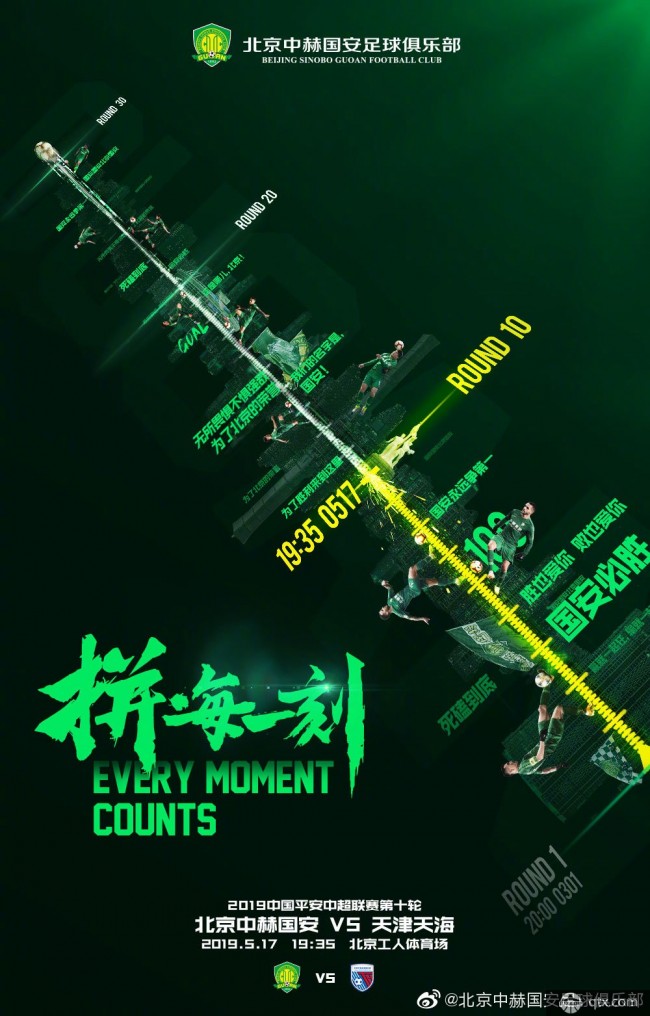 北京時間5月17日晚19:35,中超第10輪一場比賽即將展開爭奪,北京國安主場迎戰天津天海。