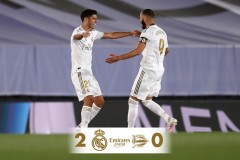 2019/20賽季西甲第37輪,皇家馬德裏主場2比1力克比利亞雷亞爾,皇馬複賽後豪取10連勝,阿森西奧跟隨球隊提前一輪奪得第34次西甲冠軍。
