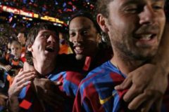 這名世界杯(FIFA World Cup)冠軍隊成員來到巴塞羅那隊時正好趕上了2003/4賽季,此前該賽季的開局比較黯淡,而羅納爾迪尼奧的到來引發了一場複興,最後巴塞羅那隊躍升到聯賽的次席,排名僅次於瓦倫西亞隊(Valencia)。2005年,這名攻擊手在他的阿蘇爾格拉納(Azulgrana)支持者麵前再次證明了他的英雄地位,他以9粒聯賽入球鼎力支持巴塞羅那隊第17次贏得了西班牙足球甲級聯賽(Primera Liga)的冠軍,這也是該隊自1998/9賽季以來第一次捧杯。