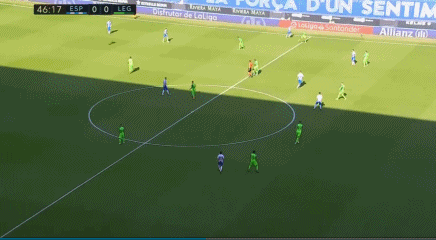 第53分鍾,佩雷斯斜長傳,席爾瓦禁區右側爆射破門,西班牙人0-1萊加內斯!