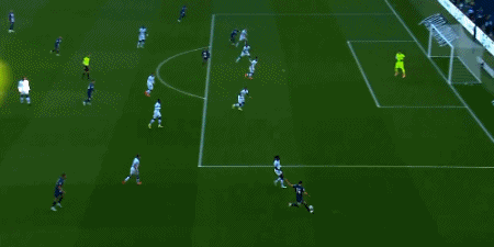 第21分鍾,內馬爾左路中線附近嚐試挑球過人失敗,隨後和對方防守隊員“肩並肩”對抗。