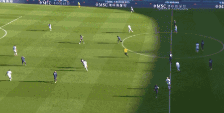 第56分鍾,巴黎的反擊機會,索萊爾送出長距離直塞,阿什拉夫展現“邊路超跑”能力趟單刀後輕鬆推射破門,巴黎聖日爾曼3-0歐賽爾。