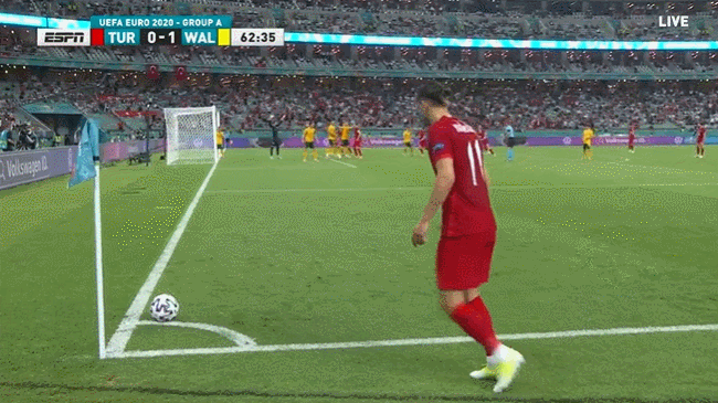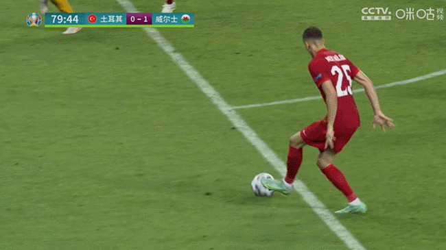 下半場第46分鍾,土耳其左路起球傳中,雲代爾後點包抄未能碰到球。