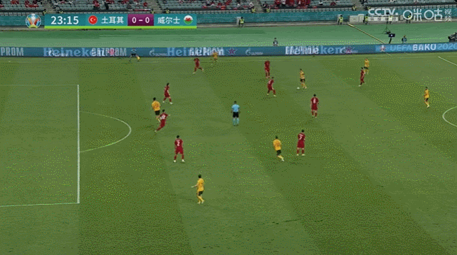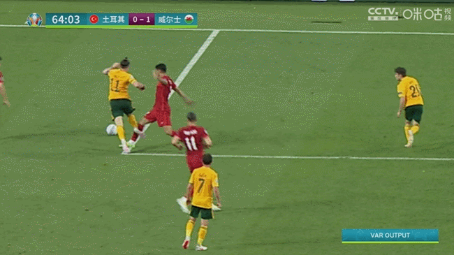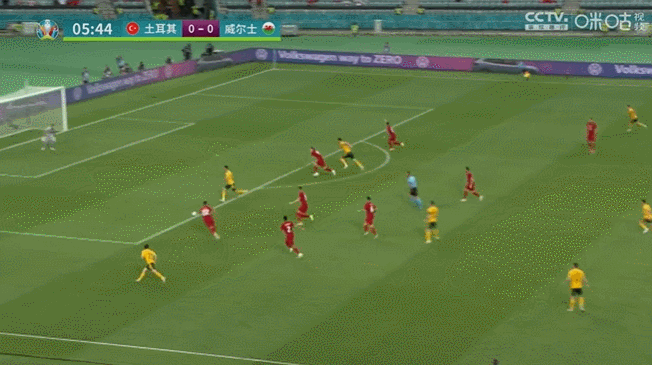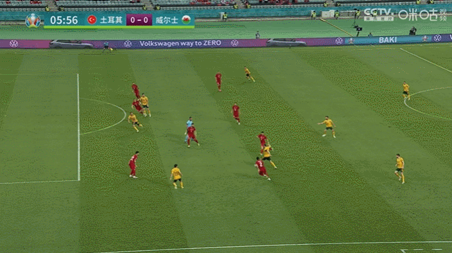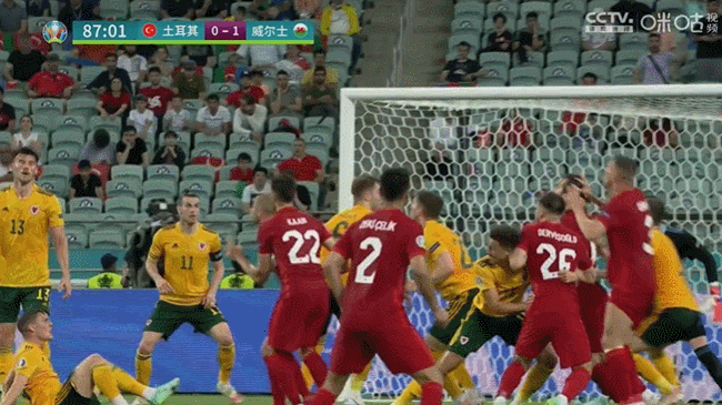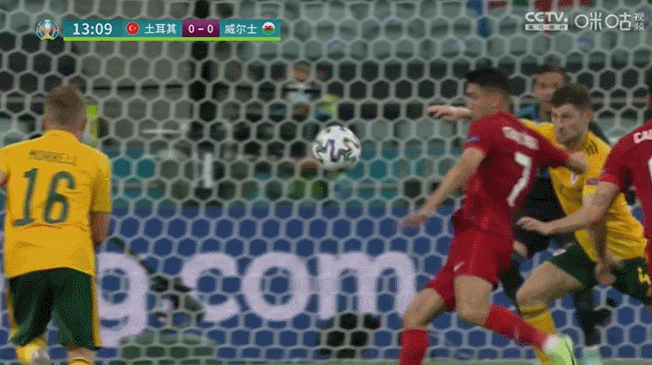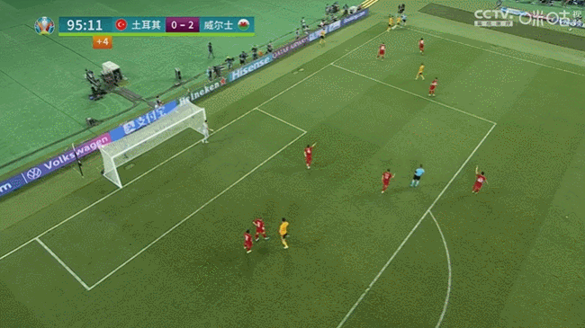 第6分鍾,威爾士連續在門前製造威脅,土耳其隊員疑似手球,裁判並未表示。
