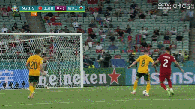 比賽最後階段,貝爾底線突破後送出傳中,羅伯茨推破門!土耳其0-2威爾士!‘