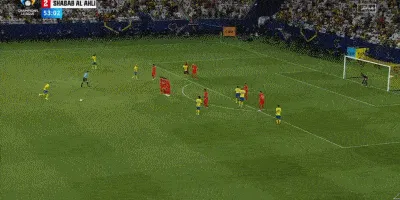 第90+4分鍾,利雅得勝利左路傳中,塔利斯卡後點高高躍起頭球攻門,利雅得勝利3-2迪拜國民!