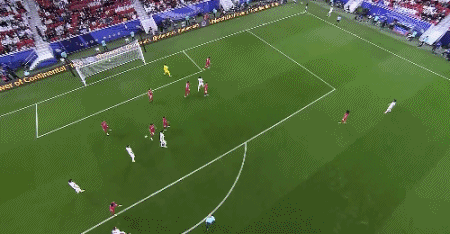 第17分鍾,阿菲夫回敲,賈西姆禁區弧頂處勁射,皮球被擋了一下發生折射,飛進球門,卡塔爾1-1伊朗!