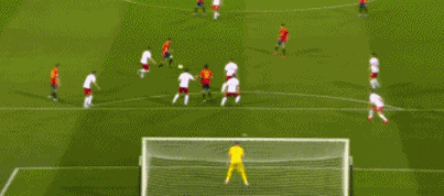 第71分鍾,塞巴略斯主罰大禁區前任意球直接攻門破門!西班牙4-0波蘭!