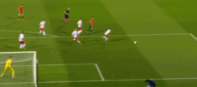 第17分鍾,阿倫-馬丁禁區左側下底傳中,福爾納斯門前鏟射破門!西班牙1-0波蘭!