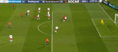 第35分鍾,塞巴略斯送出精妙直塞,奧亞薩瓦爾迅速插上搶射破門!西班牙2-0波蘭!