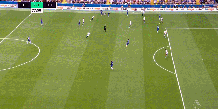第77分鍾,切爾西左路精彩傳遞後傳球找到中路的斯特林,斯特林無私直塞右插上的裏斯·詹姆斯,後者麵對門將不停球腳弓推射破門,切爾西再度領先熱刺,2-1!