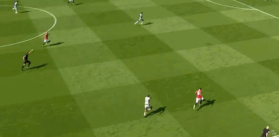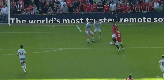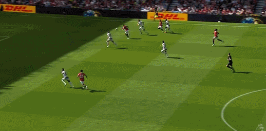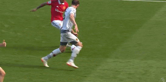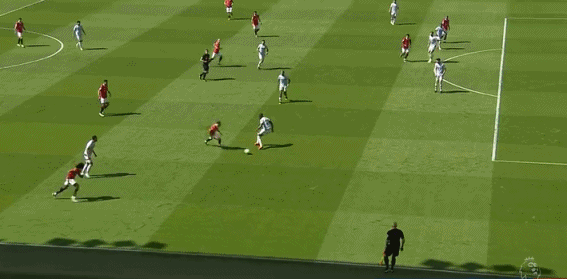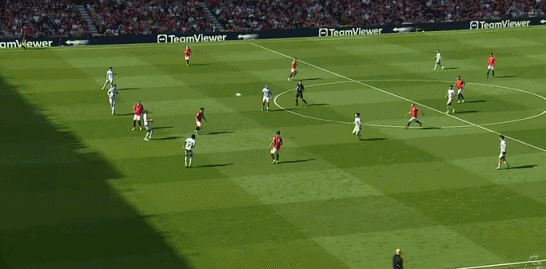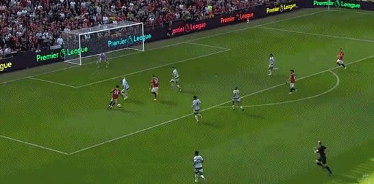 第45+1分鍾,安東尼長途奔襲甩開防守隊員沒有貪功送出橫傳,馬夏爾的射門有點缺乏力量。