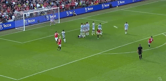 第26分鍾,B費弧頂左路附近努內斯犯規,曼聯獲得定位球。B費主罰直接射門,本特利將球穩穩拿住。