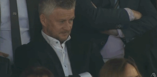 第39分鍾,轉播鏡頭給到了場邊觀賽的曼聯名宿索爾斯克亞。