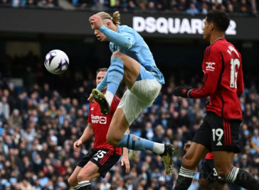 球天下3月4日訊 哈蘭德在對陣曼聯的比賽中錯失了空門,然後雙手抱頭惱怒不已。哈蘭德在本周重新找到了自己的射門靴,在足總杯對陣盧頓的比賽中打進了5個進球。曼城在曼市德比中上半場率先落後1球,哈蘭德得到了一個千載難逢的機會,可以將幫助曼城扳平比分。當時福登的傳中成功越過了曼聯的防守球員來到哈蘭德的麵前,這個時候他距離球門差不多不到2米的距離,然而哈蘭德離奇的將這個球打了高射炮。