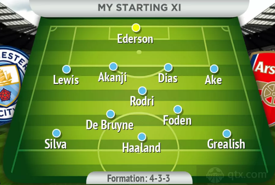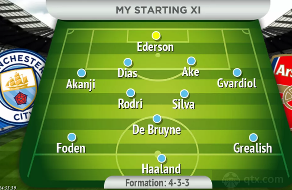 曼晚預測曼城對陣阿森納首發 哈蘭德與德布勞內出戰