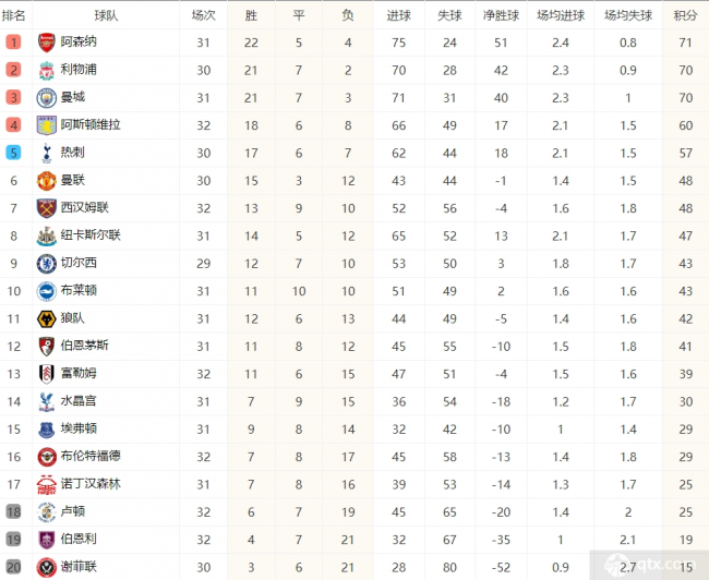 阿森納本輪比賽在客場對陣布萊頓,本場比賽阿森納的表現非常出色,球隊把握了比賽的節奏,分別憑借薩卡、哈弗茨以及特羅薩德的進球最終3:0戰勝對手,獲得了勝利。而在本場比賽取勝後,在目前的聯賽積分榜中,阿森納取得71分,球隊目前反超少賽一場的利物浦1分,排名聯賽榜首的位置。