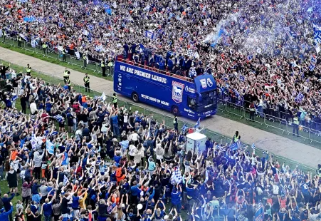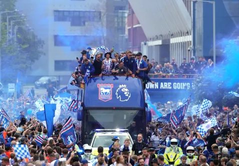 伊普斯維奇遊行慶祝場麵 鎮上各行各業球迷都參與了慶祝
