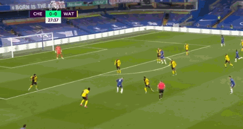 傷停補時階段,阿斯皮利奎塔左路傳中,巴克利中路抽射破門,切爾西3-0沃特福德!