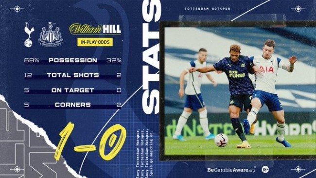 第25分鍾,凱恩持球禁區左側晃開貼防他的防守球員,送出低平球傳中,前點幾名紐卡球員慌亂中都未能完成攔截,後點的小盧卡斯搶射破門!1-0!
