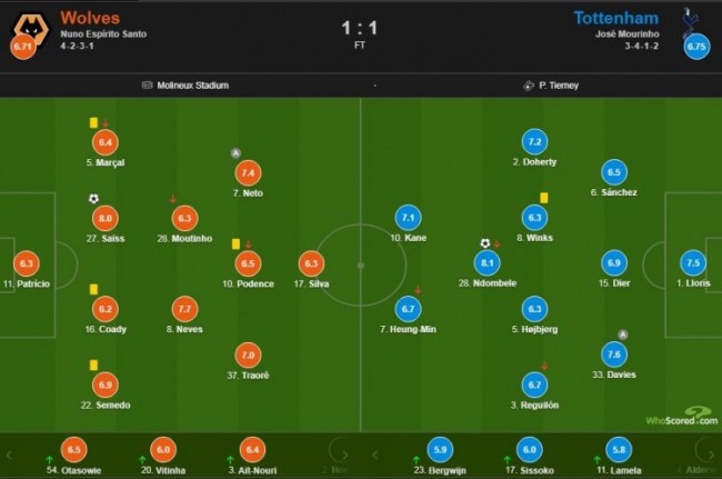 熱刺vs狼隊賽後評分:恩東貝萊8.1分全場最高