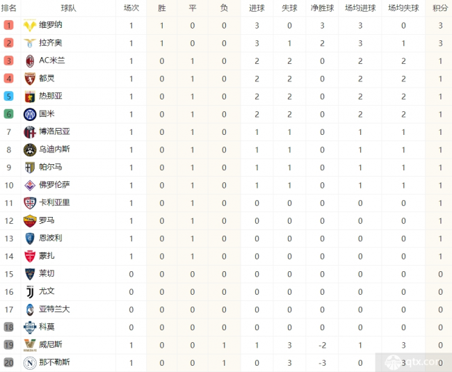 球天下8月19日訊 北京時間今日淩晨,新賽季意甲聯賽第一輪進行了多場比賽的較量,其中拉齊奧坐鎮主場迎戰威尼斯、卡利亞裏主場對陣羅馬、那不勒斯客場挑戰維羅納、博洛尼亞主場迎戰烏迪內斯。在這幾場比賽結束後,拉齊奧與維羅納獲得了比賽的勝利,博洛尼亞、烏迪內斯、卡利亞裏以及羅馬都收獲平局。在目前的聯賽積分榜中,拉齊奧也是排名聯賽第二名,而輸球的那不勒斯排名聯賽第20名。