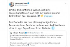 羅馬諾:戈麥斯轉會塞維利亞已完成 明日體檢後簽約