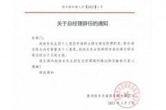 官方:趙旭東因個人原因辭去貴州恒豐總經理職務