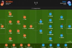 意甲米蘭德比:AC米蘭1-1戰平國際米蘭 七連勝遭終結