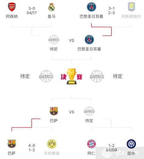 歐冠半決賽名單 巴薩與大巴黎率先晉級