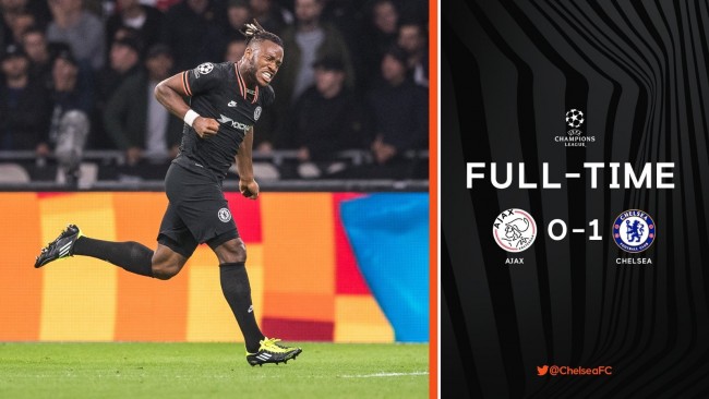 最終全場比賽結束,切爾西客場1-0戰勝阿賈克斯。